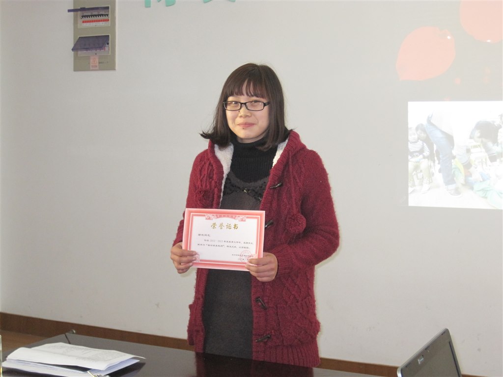 表彰大会之前进行了2012年下学期期末总结大会,赵腊美园长作了《扬“关爱”之帆、探“内涵” 之路 》的总结报告。今年,我园在省优质的平台上创建了“江苏省平安校园”,被评为“新北区园本培训先进单位”、2012年新北区中小学优秀校园网站评比中获二等奖、“手工活动中培养幼儿的创意能力”的省级课题被立为江苏省精品课题……一系列的成绩离不开所有春幼教师的辛勤付出!