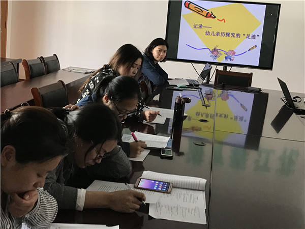 课后周嘉蕾老师带领大家进行了课例研讨,针对本次课例的亮点不足进行研讨,在大家的积极发言之后,周老师总结提升了在科学活动中记录的含义、记录的价值、记录的方法,以理论为基础,实践为手段,我们将会在接下来的活动中更好的亲历幼儿的探究足迹!